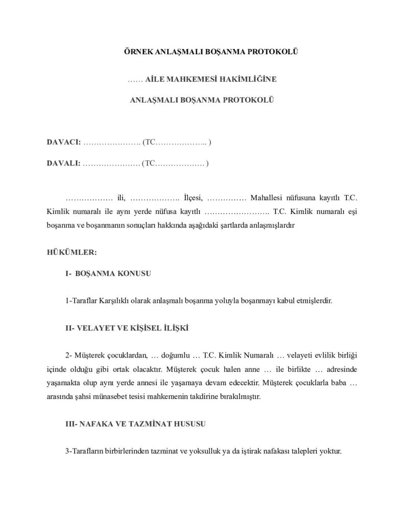 Anlaşmalı Boşanma Protokolü Örneği (PDF)